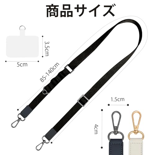 【セット内容】ショルダーストラップ(紐)×1、ショルダーストラップホルダー×1 【ショルダーストラップ仕様】ショルダーストラップ長さ調節可能:約85cm〜140cm(ナスカンは含まない)、ストラップホルダーサイズ(透明カード):約5cm×3.5cm×0.07cm、耐荷重:最大3kgまで、男女兼用、スマートフォン全機種対応。