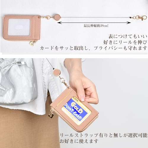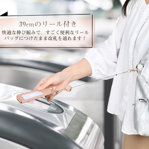 【小銭入れ リール付き】リールを伸ばして(約39cmまで)改札などをタッチし、使い終わったら手を離すとリールが自動的に戻りますので、バッにぶら下げたままセキュリティカードなどにタッチすることができます。