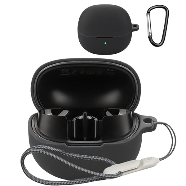 QCY MeloBuds Pro ケース 衝撃吸収 防水 防塵 軽量 紛失防止用フック スリム ソフトケース カバー QCY MeloBuds Pro カバー (ブラック)