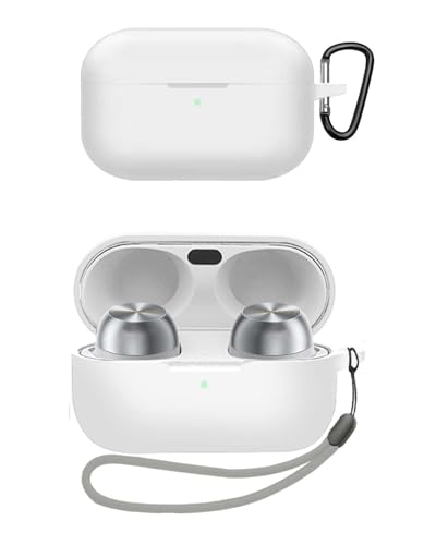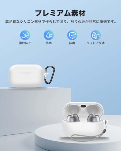 Technics EAH-AZ100 ケース ワイヤレスイヤホン 充電ケースカバー カラビナ キーチェーン付き シリコン保護ケース 落下防止 耐衝撃 防塵 キズ防止 指紋防止 Technics EAH-AZ100 対応 (ホワイト)