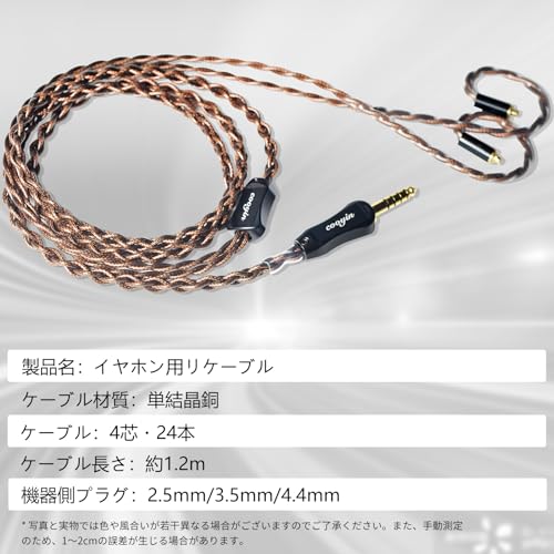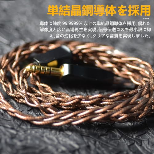 リケーブル MMCX ケーブル イヤホン 4芯 単結晶銅 Litz編み込み構造 Shure SEシリーズ用 WESTONE用 W10 W20 W30などに適合する ストレート型 4.4mm 互換品 代替品 交換用