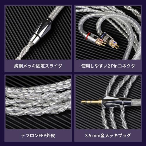 リケーブル 2pin 0.78 ケーブル イヤホン HIFI音質 4芯 銀メッキ単結晶銅 A3000 A4000 A5000 MAKE4 Topaz Autumn Winterなどに適合する 3.5mm 互換品 代替品 交換用