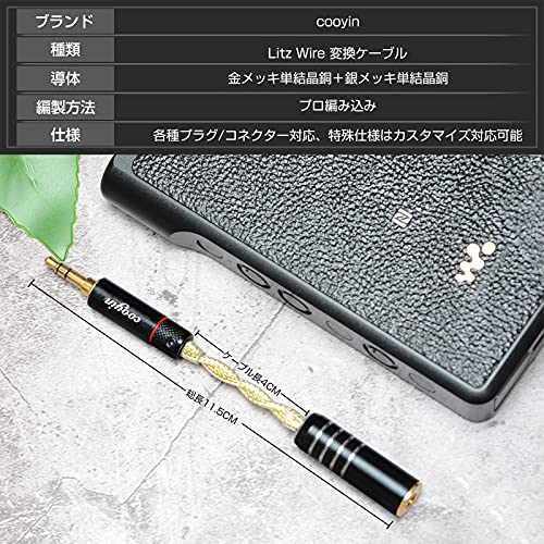 変換ケーブル イヤホンジャック 変換 3.5mm (オス) 4.4mm (メス) Litz Wire 銀メッキ単結晶銅導体 金メッキ イヤホン ヘッドホン アンプ オーディオプレーヤー等に適用