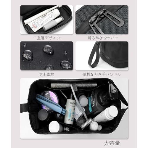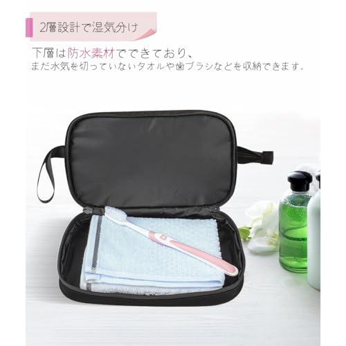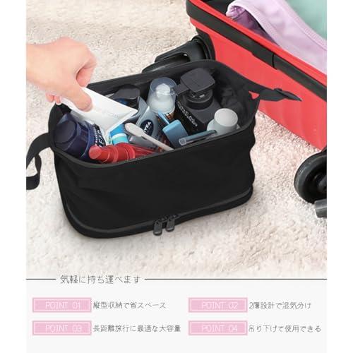 トラベルポーチ 旅行用ポーチ 洗面ポーチ 洗面用具入れ 大容量 吊り下げ 歯磨き用具 バスアイテム 立てたまま収納可能 撥水 濡れ乾き分け 化粧ポーチ ブラック