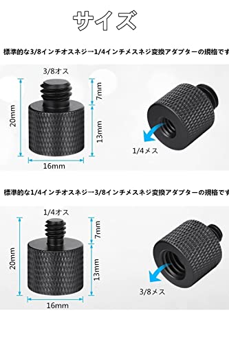 【セット内容】3/8'オス-1/4'メス カメラネジ変換アダプター*2個、1/4'オス-3/8'メス カメラネジ変換アダプター*2個。幅広い機材に対応します。