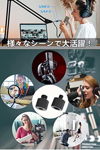 【適用範囲】標準的な1/4インチオスネジ→3/8インチメスネジ変換アダプターと3/8インチオスネジ→1/4インチメスネジ変換アダプターの規格です。組み合わせて使用でき、1/4'と3/8'の間の自由変換を実現しました。三脚/一脚取付ネジ、自撮り棒、カメラフラッシュライト、雲台などの撮影用機材,撮影スタジオの専門機材も対応できます。