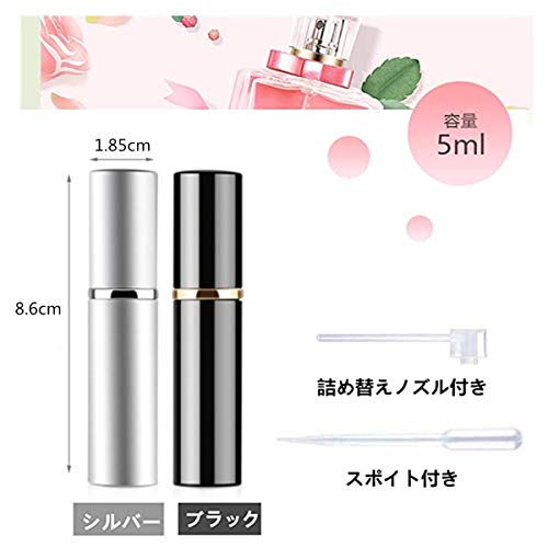 アトマイザ ー 詰め替え ポータブル クイック 香水噴霧器 携帯用 詰め替え容器 香水用 メンズ 女性用 5ml 2色セット スポイト付き / 詰め替えノズル付き 小分けボトル 香水ボトル 化粧水用瓶