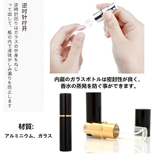 【携帯性】シンプルで軽量なデザイン、お気に入りの香水を持ち運べる、コンパクトなサイザーで、持ち運びが簡単、再利用可能です。容量は5mlと軽く、飛行機での搭乗も可能で、携帯に便利です。