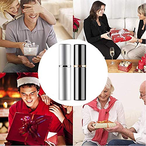 【ミニサイズで精巧】材質:アルミニウム、ガラス。内容量:5ml;直径:1.85cm; 全高:8.6cm; 重さ:約20g。セット内容: シルバー*1、ブラック*1、スポイト*1、詰め替えノズル*1。