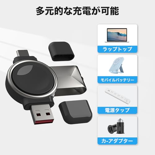 【最新の2-in-1デザイン】両面USB-CおよびUSB-Aプラグデザインにより、USB AまたはUSB Cポートを備えたあらゆるデバイスで、本製品を使用してスマートウォッチを充電できます。電源/コンピュータ/USBコンセント/壁掛け充電器または他のUSB充電器に差し込むだけで、スマートウォッチを充電できます。