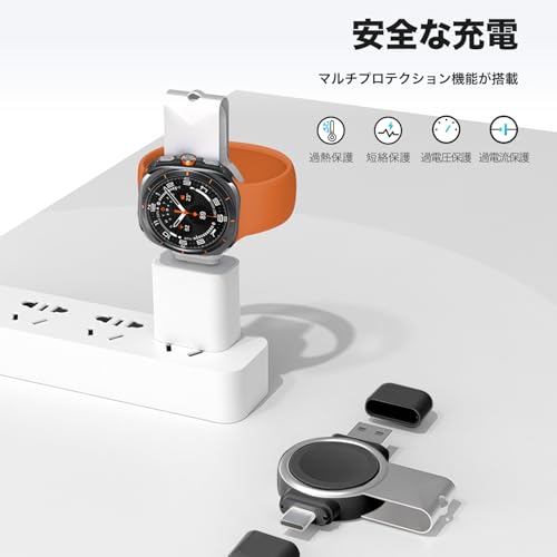 Galaxy Watch 充電器 ワイヤレス充電器 USB-C と USB-A 充電ケーブル コンパクト マグネット式 ケーブル不要 ワイヤレス 持ち運び便利 軽量 Galaxy Watch Ultra / 7 / 6 / 6 Classic / 5 / 5 Pro / 4 / 4 Classic 対応 (ブラック)