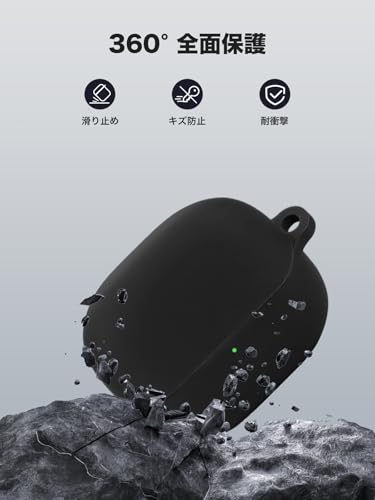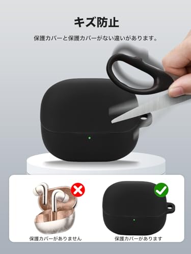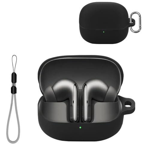 Xiaomi Buds 5 Pro ケース カバーワイヤレスイヤホン 保護カバー シリコン保護ケース ーチェーン付き 充電ケースカバー 可視LEDライト 耐衝撃 落下防止 防水 防塵 指紋防止 キズ防止 全面保護 充電便利 保護ケース Xiaomi Buds 5 Pro 対応 (ブラック)