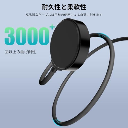 【長持ちで頑丈なケーブル】複数回の異なるタイプの曲げテストに合格済み、耐久性にとても優れております。少々雑な扱いにも耐えられるきっしりしたスマートウォッチ充電ケーブルです。