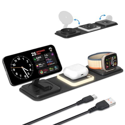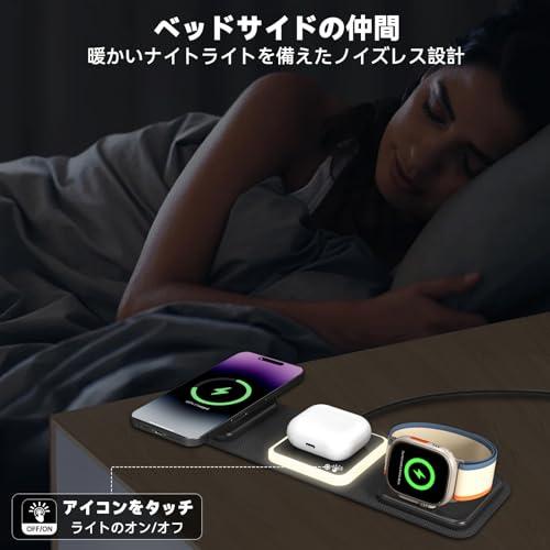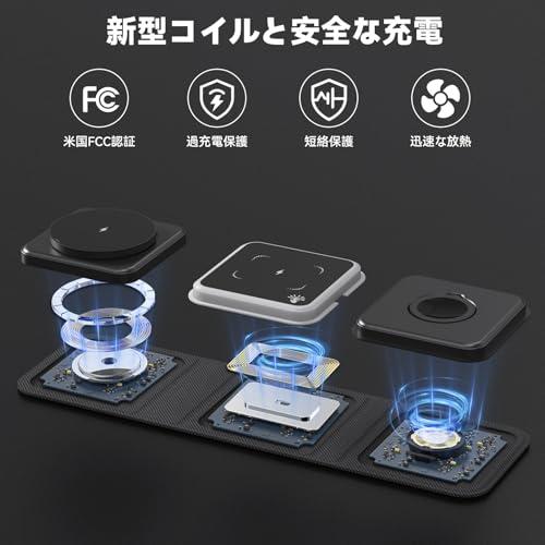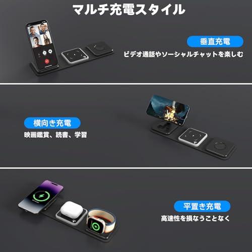 ワイヤレス充電器 15W 充電スタンド for iPhone / Apple Watch / Airpodsに同時充電対応 折りたたみ式 マグネット ワイヤレス充電ドック 旅行用 for iPhone 16 15 14 13 12 Pro Max Plus for iWatch 1-9 / Ultra for AirPods Pro用 ブラック