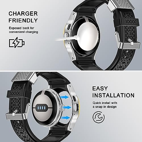 【取り付けと充電が簡単】シリコンバンドはオールラウンドメタルケース保護(ボトムカバーなし)設計で、メタルケースを外すことなくGoogle Pixel Watch 3/2/1 41mmを簡単に充電できます。 スナップインデザインの取り付けにより、追加のツールなしで簡単に時計をケースに入れることができます。
