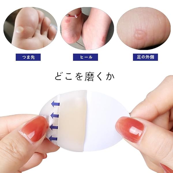 靴擦れ防止:柔らかいゲルパッドが足と靴の間の直接の摩擦を防ぎ、新しい靴で足を擦ったり、長時間歩いたりすることによる痛みを和らげ、水ぶくれを防ぎます。しなやかなクッション効果で靴の圧迫から足を保護、マメ・靴ずれの痛みをやわらげます。