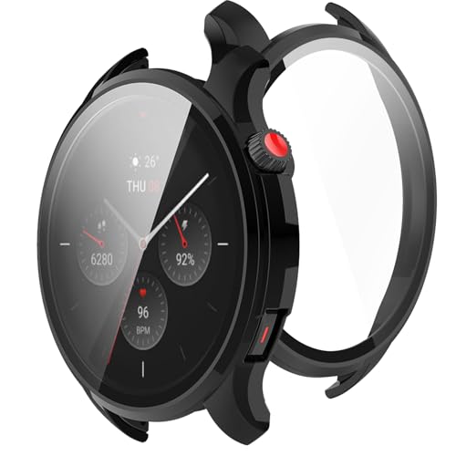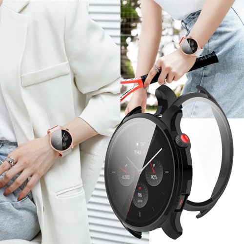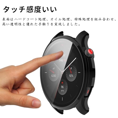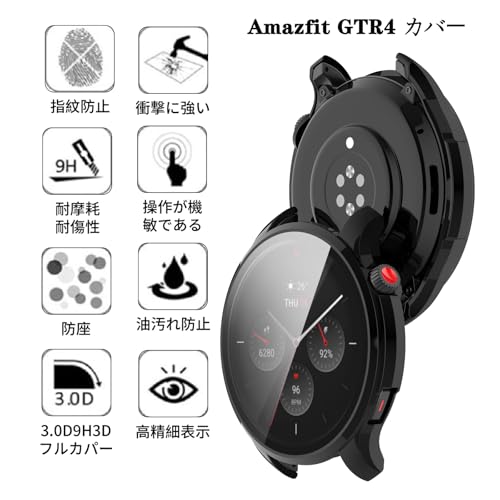Amazfit GTR 4 カバー ケース PC ガラスフィルム一体型 全面保護 二重構造 防塵 キズ防止 軽量 (ブラック)