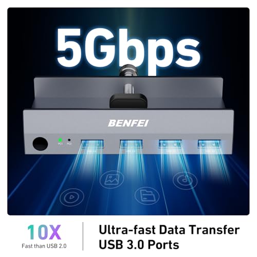 【4つのUSB 3.0ポートを共有】KVMスイッチには、USBフラッシュドライブ、プリンター、モバイルハードドライブ、Uディスク、その他のUSB 2.0およびUSB 3.0デバイスを共有するための4つのUSB-Aポートがあります。 USB 3.0は最大5Gbpsのデータ転送速度を提供し、USB 2.0はわずか480Mbpsです。 ファイルや画像の転送を高速化し、仕事や生活をよ