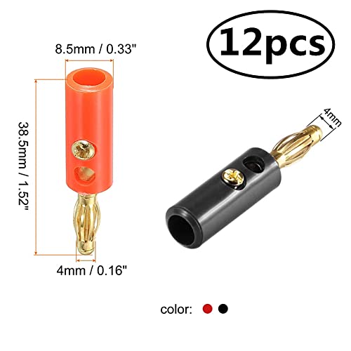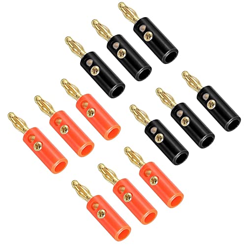 12個 (赤6個+黒6個) プレミアム 4mmバナナプラグ、金メッキ バナナプラグコネクタ、 スピーカー オーディオ ビデオレシーバー アンプ サウンドシステム