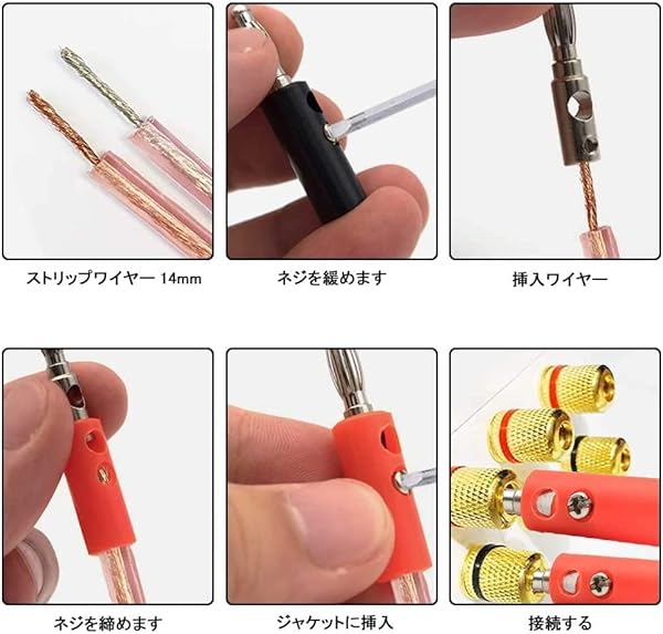 スピーカーケーブルを接続することができるバナナプラグです。 スピーカーバナナプラグは メッキのコネクタを採用し、金属シェルにより、クリアな信号伝送を実現します