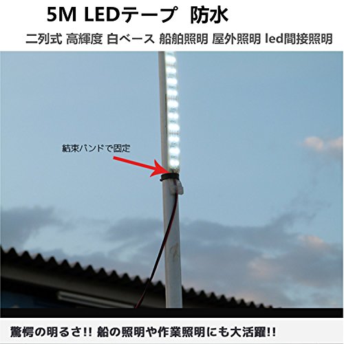 LEDテープ 24V 防水 5M ホワイト SMD5050 600連 高輝度 白ベース 船舶照明 屋外照明 led間接照明 カバー付 作業灯 トラック 正面発光 (24V) 送料無料