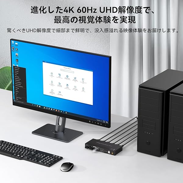 4K 60HZまでの解像度に対応: 4Kの魅力は、優れた画質、広い視野、細部の再現性、鮮やかな色表現などがあります。この HDMI USB 切替器は 4K@60Hz の解像度をサポートし、画像表示をより繊細でリアルにし、ゲームなどをよりリアルに楽しむことができます。
