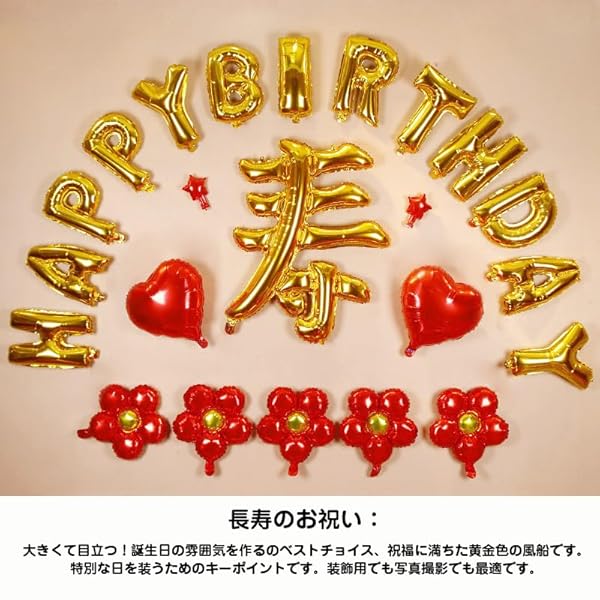 【長寿のお祝い】:大きくて目立つ!誕生日の雰囲気を作るのベストチョイス、祝福に満ちた黄金色の風船です。特別な日を装うためのキーポイントです。装飾用でも写真撮影でも最適です。