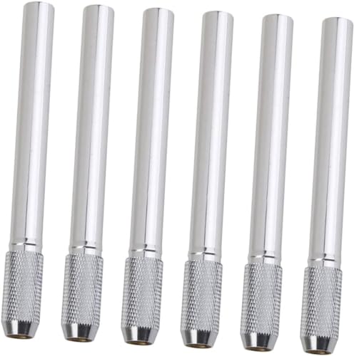 鉛筆延長ホルダー 鉛筆キャップ 補助軸 アルミニウム製 軽量 鉛筆エクステンダ 姿勢矯正 子供 学校 筆記用具 美術生 デッサン用具 持ちやすい 短い鉛筆用 補助軸 短くなった鉛筆ホルダー (6本セット シルバー)