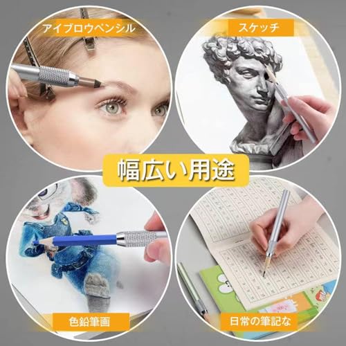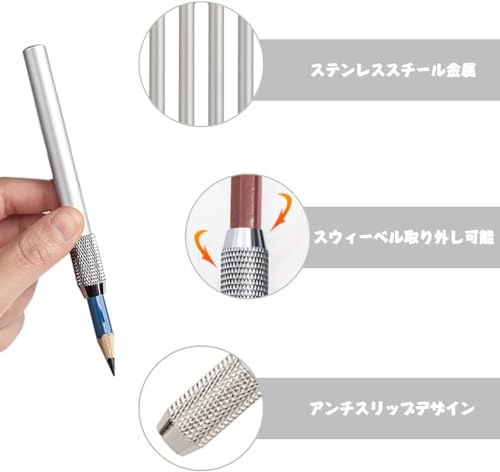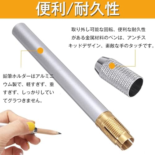 携帯に便利です:鉛筆ホルダーはアルミニウム製で、軽すぎず、重すぎず、しっかりしていてグラつきません。取り外し可能な回転、便利な耐久性がある金属材料のペンは、アンチスキッドデザイン、素敵な手のタッチです。