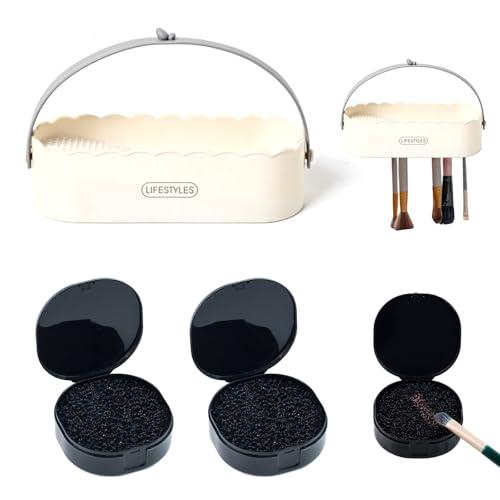 メイクブラシクリーナー 洗浄 乾燥 収納 パフクリーナー 大容量 メイクブラシ洗浄 乾燥 収納 3in1 メイクブラシセット メイクブラシ おしゃれ 無臭 パフクリーナー スポンジクリーナー (ホワイト)