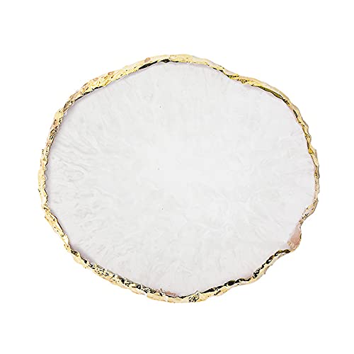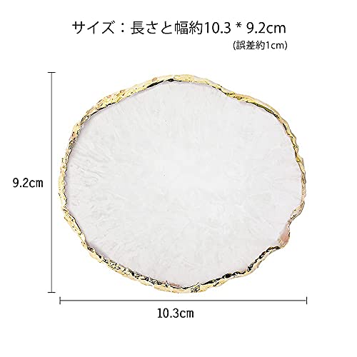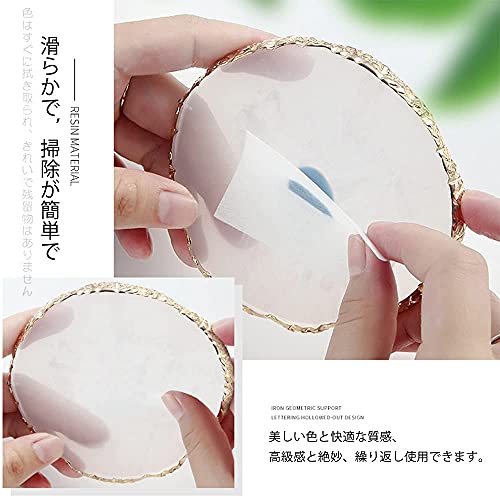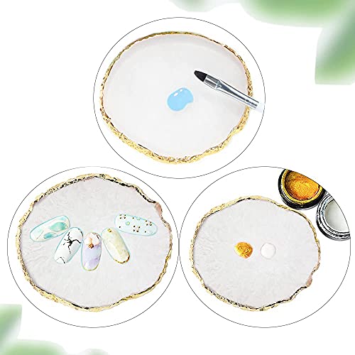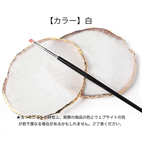 ネイルアートパレット 天然樹脂ストーン ネイルアートパーツ ネイル ジェル パレット 瑪瑙 コースター ゴールドエッジ 丸い形 絵皿 用具 ホワイト