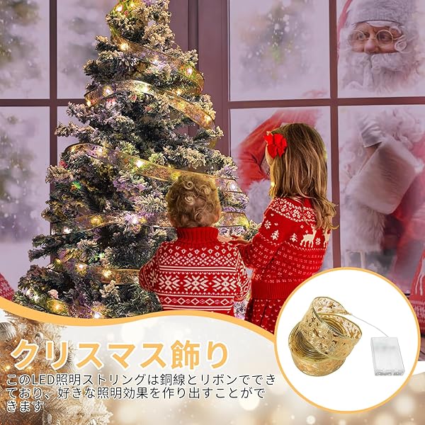 【電池ボックス付き】:クリスマスリボンライトには電池ボックスが付いており、単4電池3本(別売)を使って屋外でリボンライトを点灯できます。 庭、ガーデン、部屋、階段、結婚式場、クリスマスツリー、様々なパーティーシーンなど、点灯したクリスマス