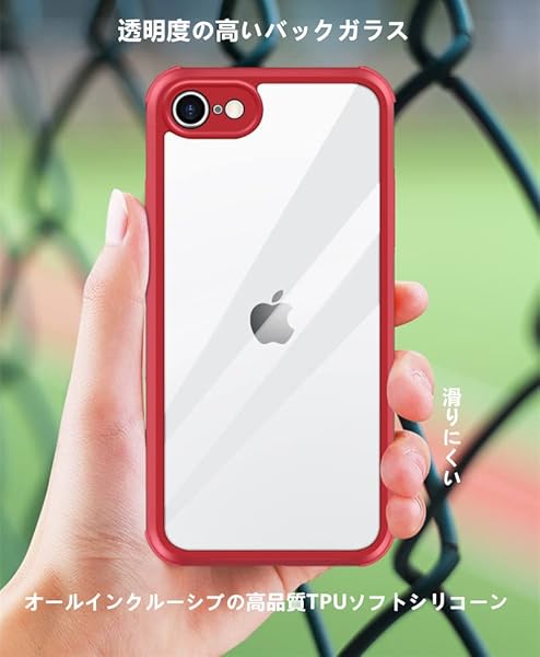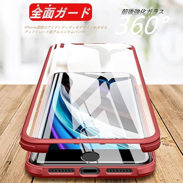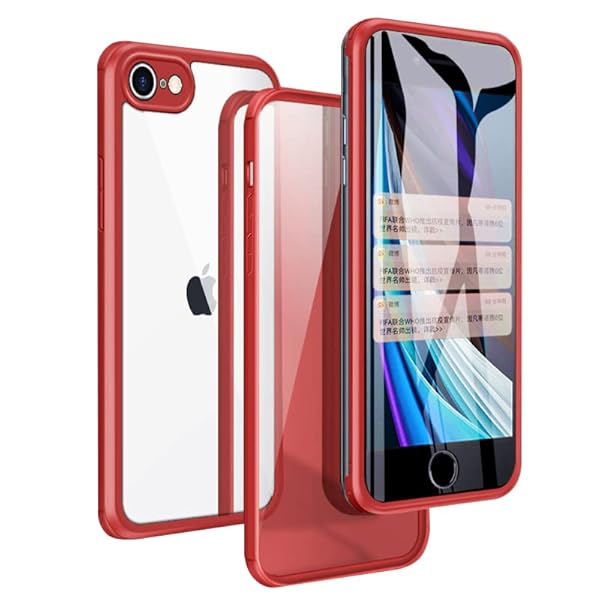 iPhoneSE ケース 両面ガラス 表面 強化ガラス +背面 強化ガラス シリコン バンパー 高タッチ感度 360°全面保護 表裏フルカバー クリア 透明 前面液晶ガラス 背面ガラス クリアケース 擦り傷防止 ワイヤレス充電対応 (iPhone8 / SE2 / SE3 レッド)