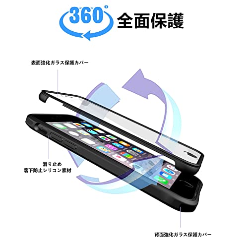 送料無料 iPhoneSE ケース 両面ガラス 表面 強化ガラス +背面 強化ガラス シリコン バンパー 高タッチ感度 360°全面保護 表裏フルカバー クリア 透明 前面液晶ガラス 背面ガラス クリアケース 擦り傷防止 ワイヤレス充電対応 (iPhone8 / SE2