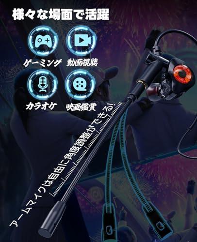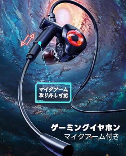 イヤホン ゲーミング マイク付き 有線 3.5mm カラオケ用 イヤホンマイク 取り外し可能なマイクアーム ゲーミングヘッドセット 人間工学 耳かけ PUBG APEX PC パソコン Web会議 PS4 / PS5 / Switchなど適用