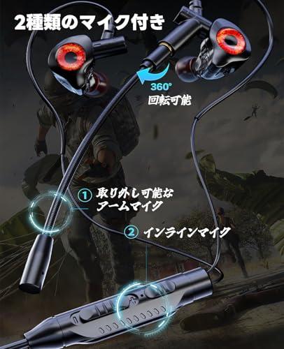 【2種類のマイクシステム】有線イヤホン ゲームにはインラインマイクと取り外し可能なアームマイクが両方搭載されています。これにより、地下鉄などの騒がしい環境でも小さな声をしっかりと拾うことが可能です。PUBGやAP