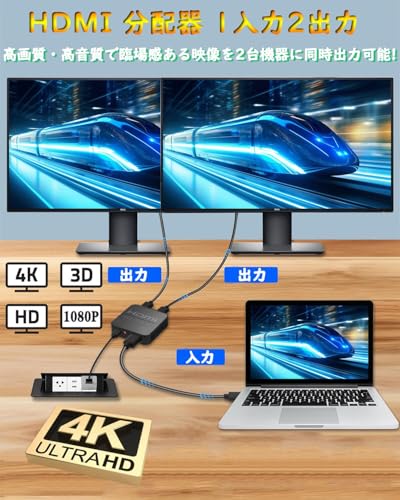 HDMI 分配器 1入力2出力 二股 2台のディスプレイ 同時出力可能 スプリッター て複数画面出力可能 hdmi 増設 オーディオ同期 PS5 / Xbox / HDTV / DVD / PC / fire tv stick / PC / HDTVなど幅広く対応 (高速1.5Mの2.0HDMIケーブル & USB電源ケーブル付き) ...