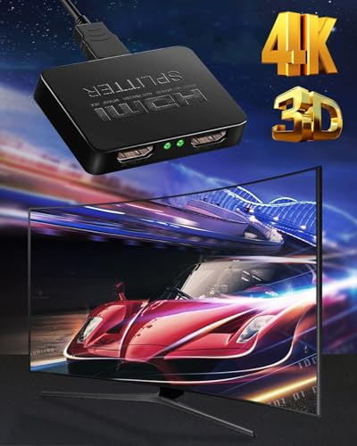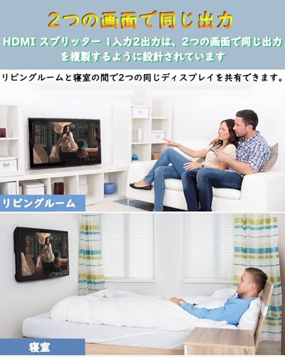 【HDMI 分配器 同時出力】HDMI スプリッター 1入力2出力は、2つの画面で同じ出力を複製するように設計されています- HDMI スプリッター 2画面同時出力 あなたはビデオとオーディオを同時に、損失なしで、遅れなしで得るでしょう。【複製するだけで、2つの異なる出力は提供されません】