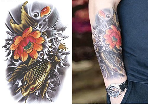 タトゥーシール 大きめ サイズ 金の鯉 蓮の花 防水 刺青 入れ墨 送料無料