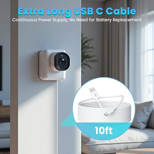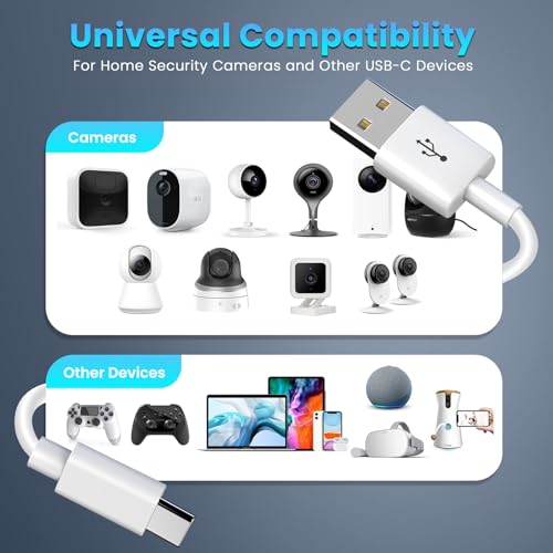 USB-C対応のセキュリティカメラと互換性があり、他のUSB-C対応デバイスでも動作します。3メートル/16.5フィートの余裕の長さで、バッテリーを頻繁に充電することなく、CCTVカメラを好きな場所に取り付けることができます。