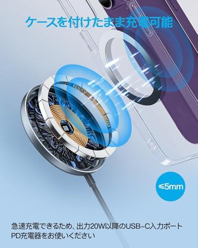 磁力で自動固定:Magsafe(マグセーフ)技術に適用するため、超強力マグネットのN52磁石を採用し、iPhone 16/15/14/13/12各シリーズのPro/Pro Max/Mini/Plus機種は近寄る置くと、後ろにバッと吸着します。従来品より、置く位置ズレの問題を防止した上、充電効率も高くなります。