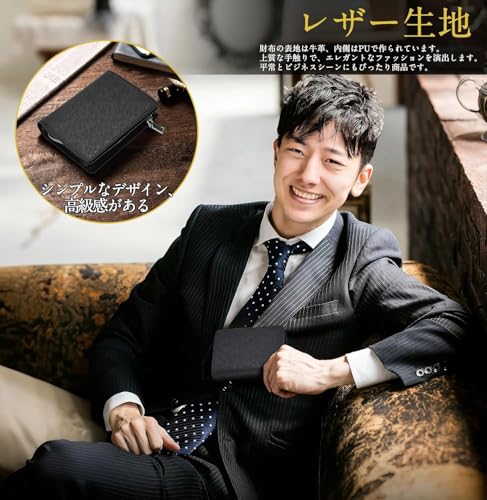 【レザーの生地】財布の表側生地は牛革、内側はPUで作られています。上質な手触りで、エレガントなファッション小物です。シンプルなデザインで、ビジネスシーンにもぴったりな商品です