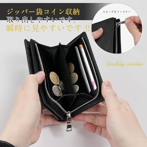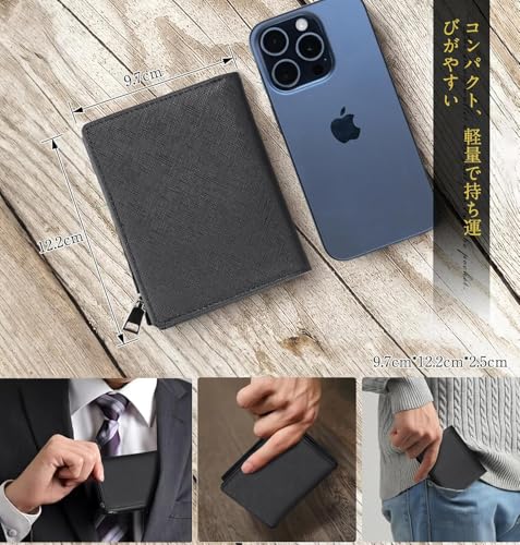 財布 メンズ 2つ折り 本革 コンパクト 折りたたみ ケース付き 父の日 大容量 多機能 カードケース 小銭入れ ファスナー プレゼント 黒