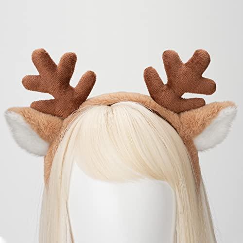 トナカイ カチューシャ 鹿 鹿の角 鹿みみ 獣耳 カチューシャ クリスマス トナカイ コスプレ 仮装 コスチューム用小物 (ブラウン)