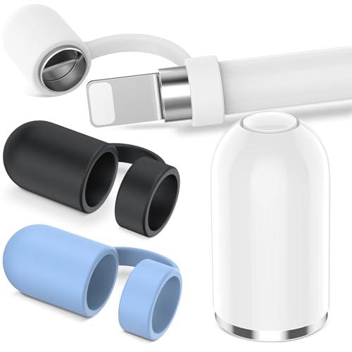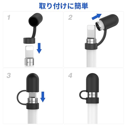 4点セット Apple Pencil 交換用キャップ アップルペンシル キャップ 第1世代 タッチペン交換用 紛失防止 Apple Pencil 第1世代対応 強力磁気 シリコン 充電口保護カバー ホルダー付き 材質 ipad ペンシルキャップ (ホワイト / ブラック / パブルー)