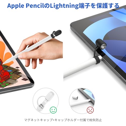 キャップホルダーでキャップを守る:セットには、3点のキャップホルダーが付属、これによってApple Pencil本体とキャップをつなぎ、キャップの紛失を防ぎ、尖端であるキャップを傷や汚れから守ります