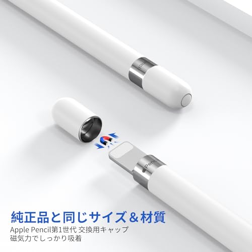 磁気機能があるの交換キャップ:本製品アップルペンシル キャップ、内部が磁気機能付き、しっかり取り付けられる強力マグネット式、磁気力でスタイラスをしっかり吸着できます。純正品に比べ、磁力が弱くしっかりはまる感じはありませんが強く振っても外れることはありませんでした