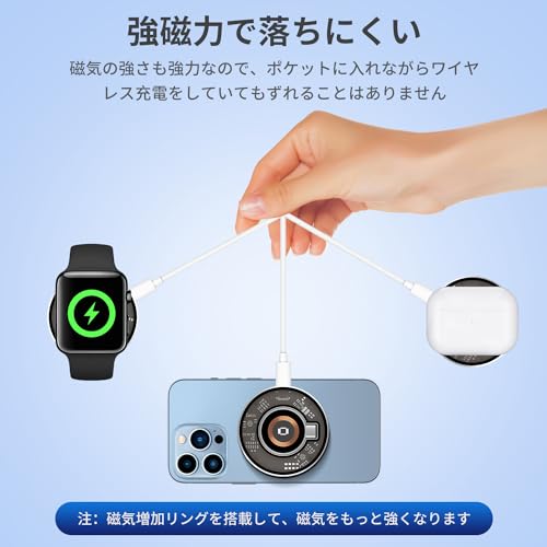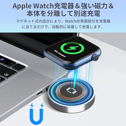 【Apple Watch充電器 & 強い磁力 & 本体を分離して別途充電】Apple Watch 充電器は分解して単独で使用できます。ラップトップの TypeC インターフェイスに接続して Apple Watch を充電するのに非常に便利です。また、屋外で遊ぶために持ち運ぶこともできます。モバイル電源に接続して、 iPhone を充電するための元のワイヤレス充電器に影響を与えることなく、Apple Watch を充電できます。