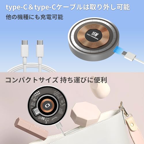 MagSafe マグネット式 マグセーフ充電器 3 in 1 ワイヤレス充電器 Apple Watch 充電器 Qi認証 急速充電 i-Phone / Apple Watch / Airpodsに対応 15W出力 TypeC端子 Apple Watch Ultra / 8 / 7 / 6 / 5 / 4 / 3+ Airpods 2 / 3 / Pro i-Phone15 / 14 / 13 / 12 (シルバー)