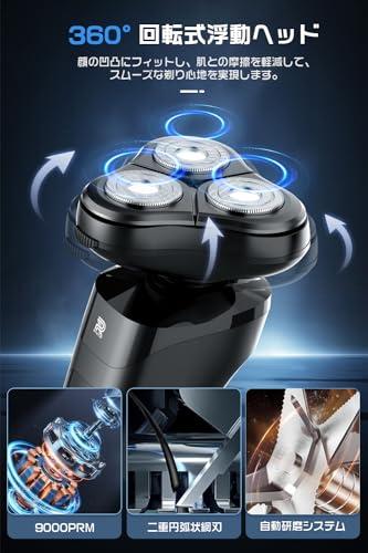 【高速回転9000rpm 自動研磨システム】 最新の高速回転モーターと極薄メッシュ刃3ヘッドを搭載した 電動シェーバーは、耐久性があり、9000rpm/分の高速回転で、1分間で早剃り&深剃りを同時に実現します。荒いひげでも簡単に剃れ、朝の時間を節約できます。自動研磨機能により、刃を頻繁に交換する必要がなく、刃の剃り心地が上がります。肌が敏感な人もスムーズに剃れます。